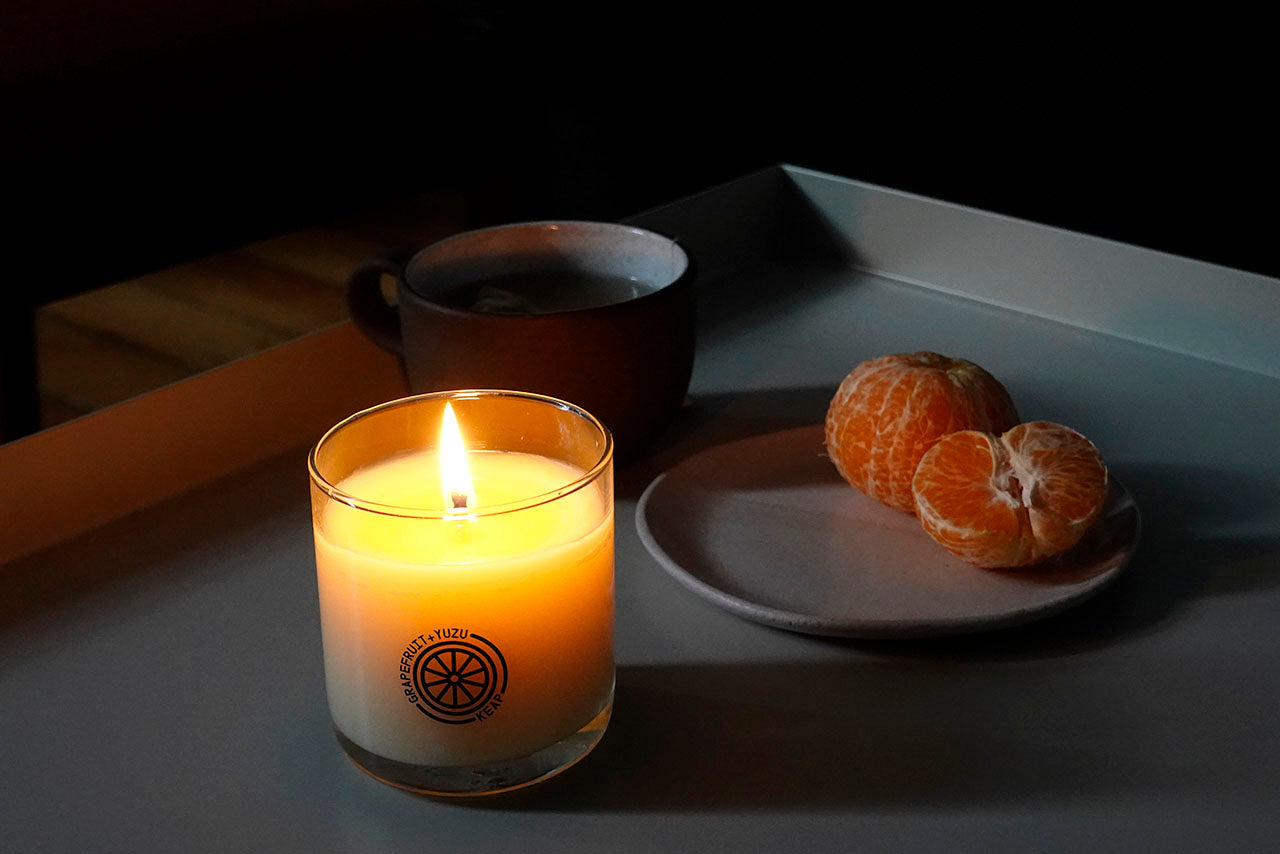 Liven up your day with our current Seasonal member shipment containing a Grapefruit + Yuzu candle, a tealight preview of next month's Seasonal Scent (Hot Springs), a limited-edition coaster, and a letter from the Keap Team.